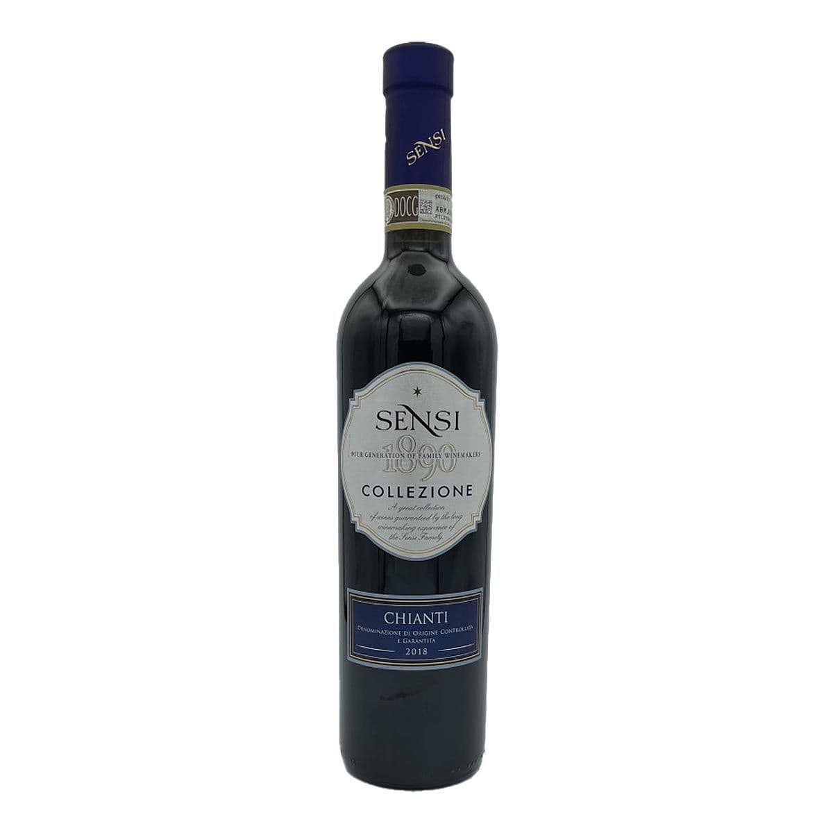 Sensi Collezione Chianti 2018 is a Tuscan red wine, primarily made from Sangiovese grapes, offering a ruby red color and an aromatic profile of cherry, violet, and spices.